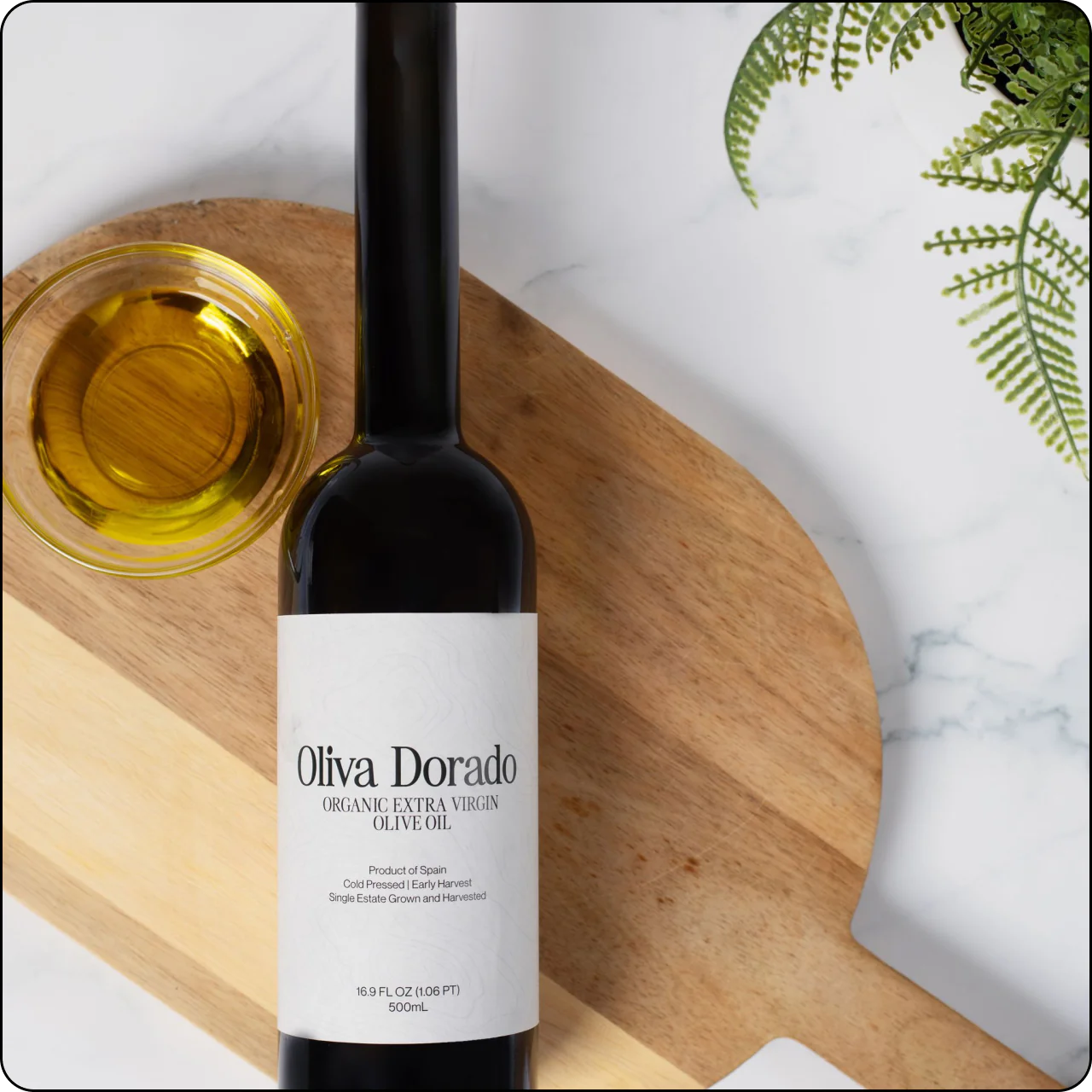 Our premium Organic Extra Virgin Olive Oil comes directly from a single olive grove in Northern Spain. Our olives are farmed, harvested, cold-pressed, and bottled on-site to create a 100% authentic extra virgin olive oil.